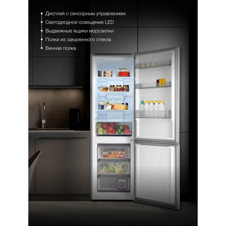 * Стильный дизайн. Нержавеющая сталь придаёт холодильнику элегантный и современный вид, который подойдёт к любому интерьеру.