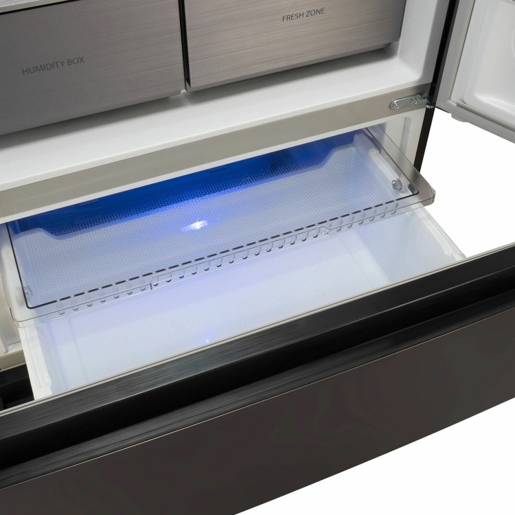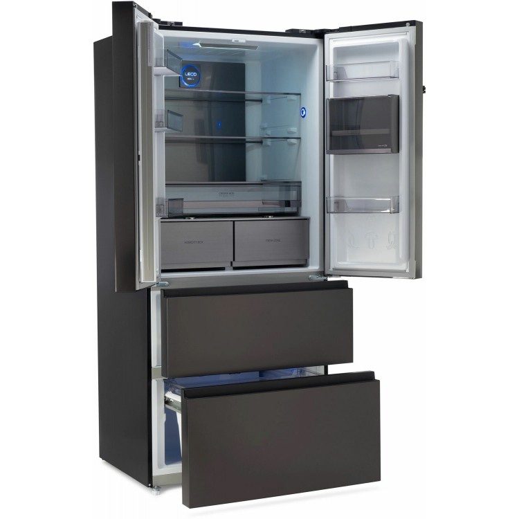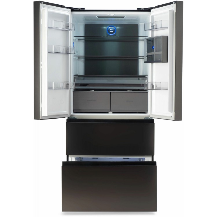 * Удобный и функциональный. Холодильник оснащён тремя камерами, четырьмя дверями, тремя полками и тремя ящиками в холодильном отделении, а также двумя ящиками/полками в морозильном отделении.