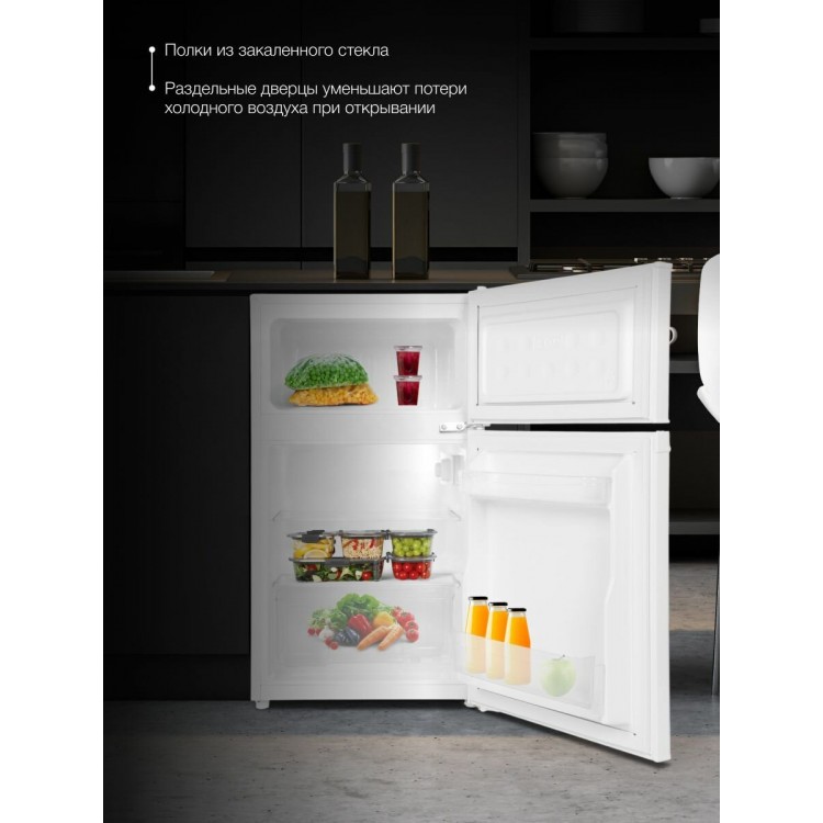 Удобный двухкамерный холодильник отлично вписался в интерьер. Охлаждение работает равномерно, продукты не портятся и не пересыхают, запахи хорошо выветриваются, никакой наледи или воды внизу. Морозильная камера довольно вместительная для запасов на несколько недель.