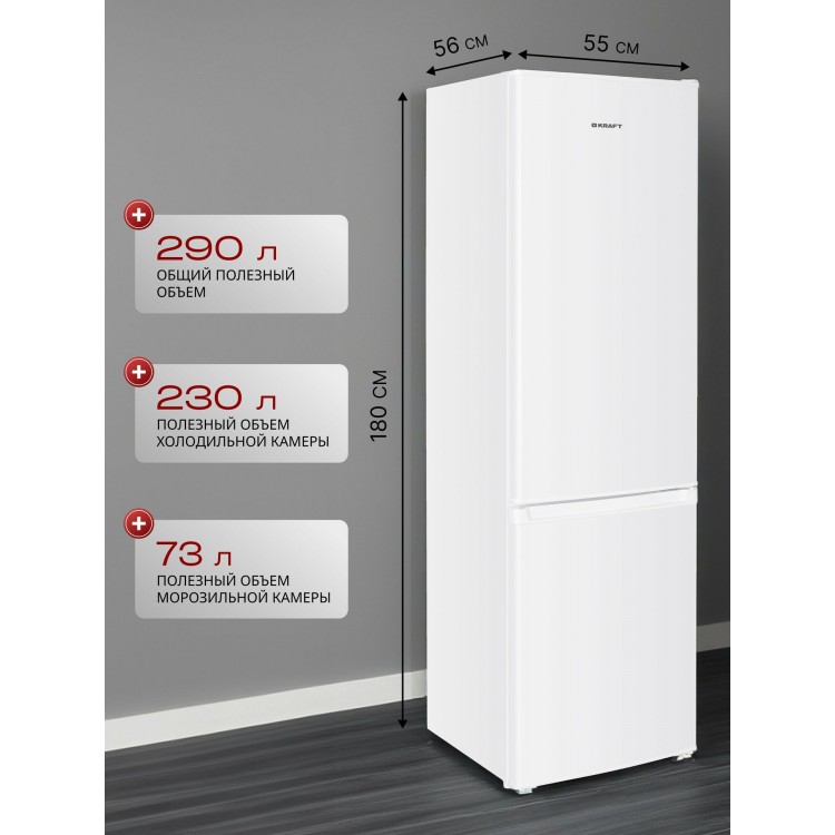 | Название | Холодильник двухкамерный Kraft KF-DC290W, 303 л, двухдверный, подсветка LED, класс А+, белый |