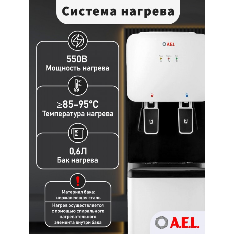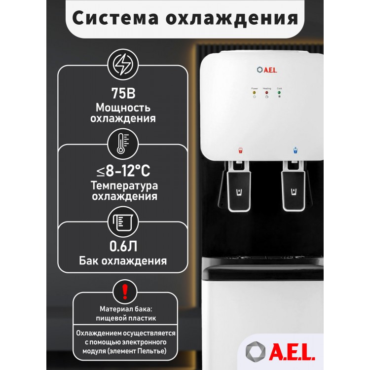 | Название | Кулер для воды напольный AEL 85c LD white с нагревом, электронным охлаждением и неохлаждаемым шкафчиком |