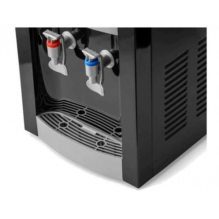 * Удобство использования. Модель оснащена двумя кранами для подачи воды, что позволяет одновременно пользоваться кулером нескольким людям. Управление подачей воды осуществляется по принципу «push» — кран.