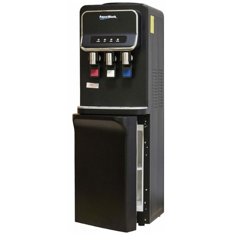 Очень красивый внешне. Хорошо греет и охлаждает. Работает тихо. Не совсем понятна нижняя часть. Выглядит как холодильник, внутри все выполнено именно так, и дверца как у холодильника) но там просто полочки для… посуды? Наверное да) мне не принципиально, я брала его домой для кухни, холодильник есть итак, но тогда бы было интереснее, если бы в данную полочку умещался запасной балон воды, хотя бы 10 литров) а так 5 звёзд! Покупала исключительно из-за наличия