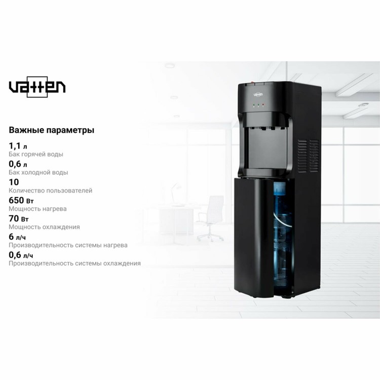 Ищете качественный и надёжный напольный кулер для воды? Обратите внимание на модель VATTEN L45NE. Этот кулер сочетает в себе всё необходимое для обеспечения вас и ваших близких чистой и свежей водой.