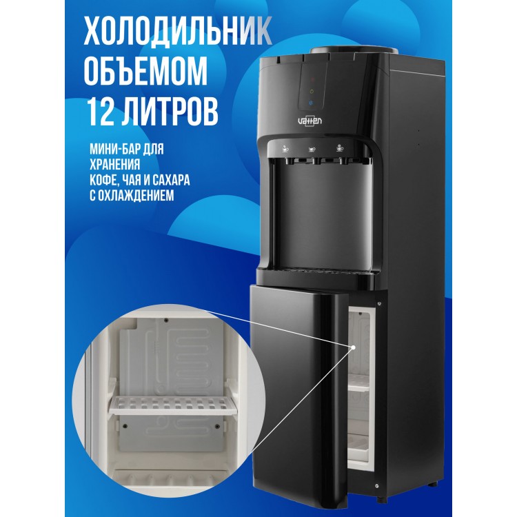 Напольный кулер Vatten V02NKB с холодильником (черный)
