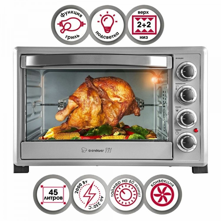 | Название | Мини печь электрическая ENDEVER Danko-4047 / 45 литров / 2000 Вт / до 250 градусов / конвекция, гриль |