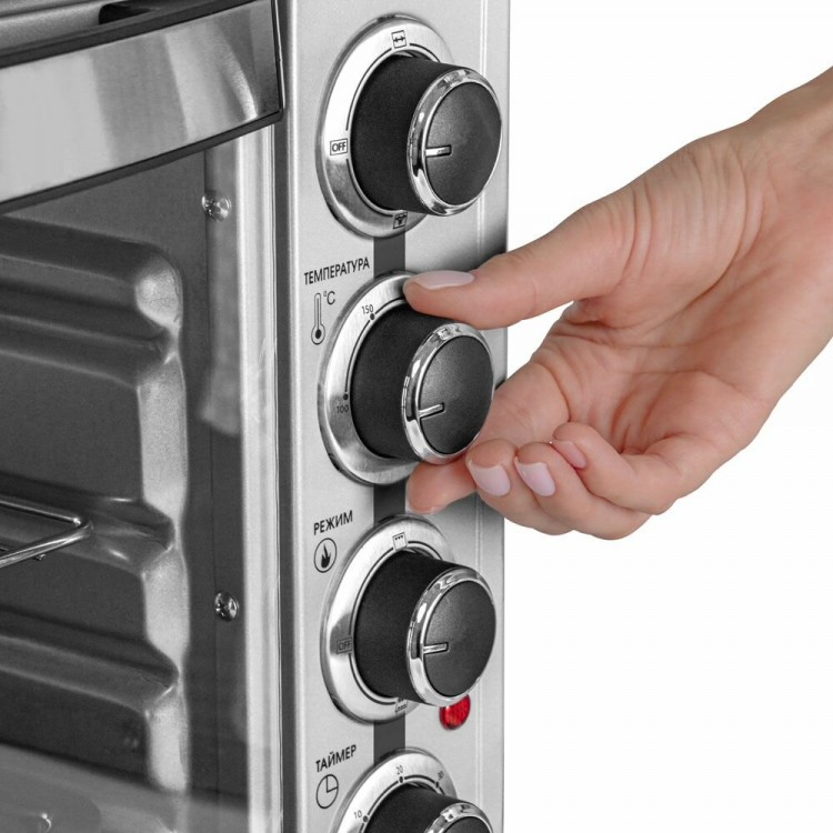 Эта модель обладает всеми необходимыми функциями для приготовления разнообразных блюд. Она имеет 5 режимов работы, включая верхний и нижний нагрев, конвекцию, нижний нагрев и гриль. Максимальная температура нагрева составляет 250 градусов C, а минимальная — 100 градусов C.