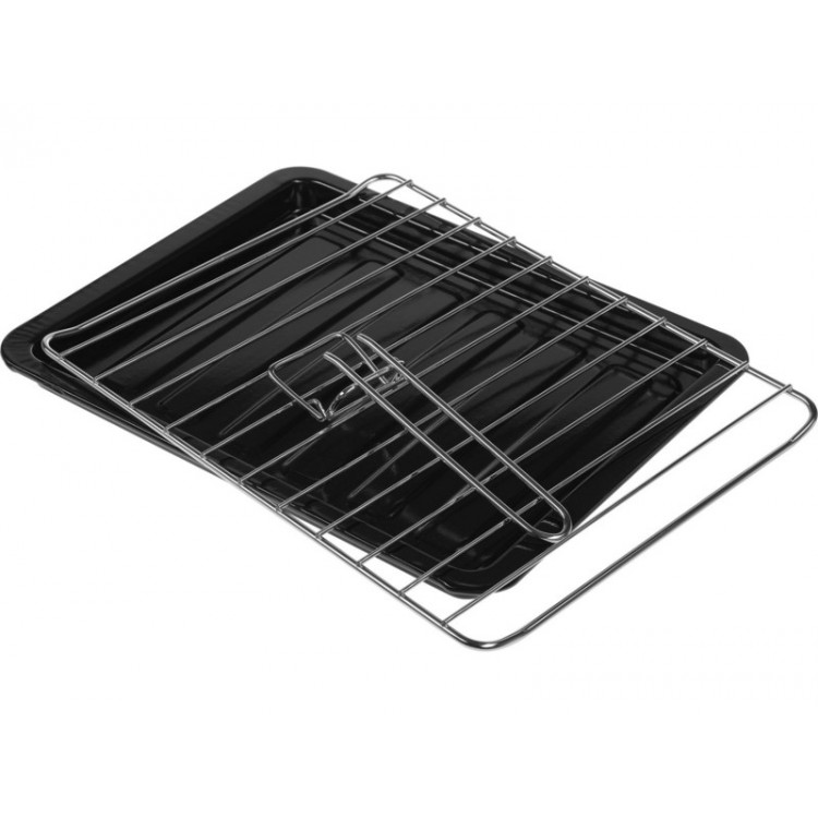 Эта мини-печь обладает всеми необходимыми функциями для приготовления вкусных блюд. Она имеет механическое управление, световой индикатор, таймер и конвекцию. В комплекте с печью идут съёмная решётка, противень и поддон для сбора крошек и масла.