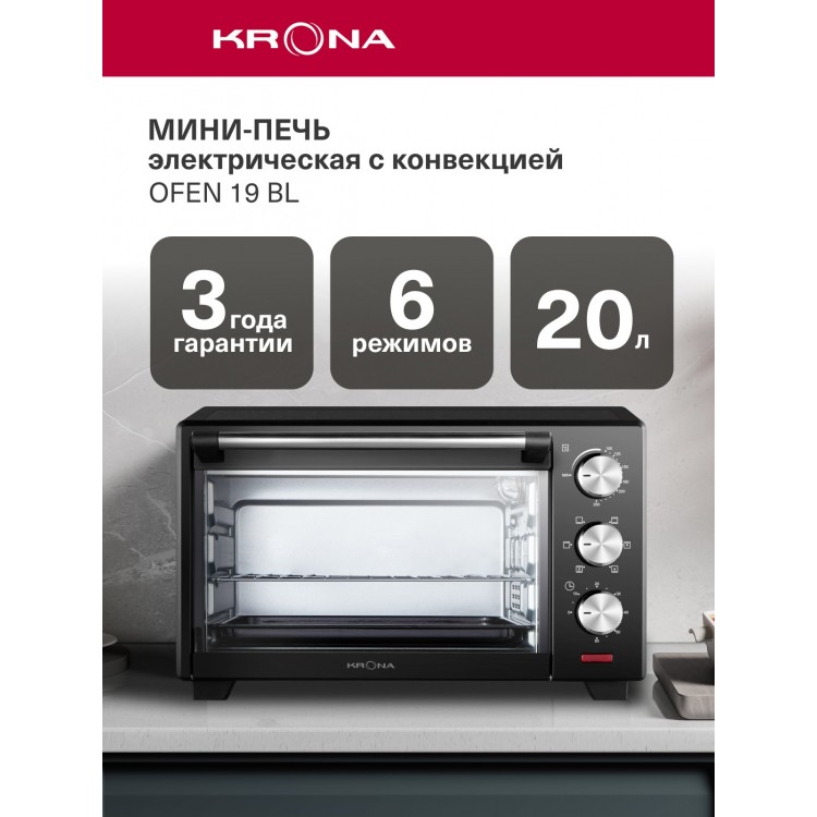 | Название | Мини-печь электрическая с конвекцией KRONA OFEN 19 Bl |