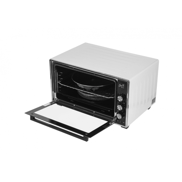 Внутреннее покрытие из эмали легко очищается, а внутренняя подсветка делает процесс приготовления ещё более комфортным. В комплекте с мини-печью вы получите вертел, держатель для противня/решётки, круглый противень, противень и решётку.