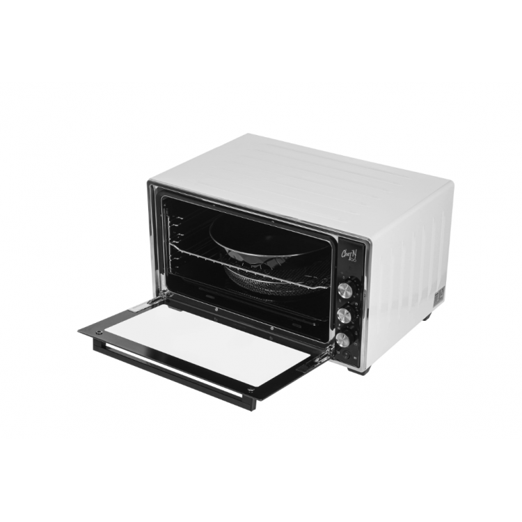 * Функциональность. В комплекте с мини-печью Simfer M50W35 идут вертел, держатель для противня/решётки, круглый противень, противень и решётка. Это позволяет готовить разнообразные блюда.