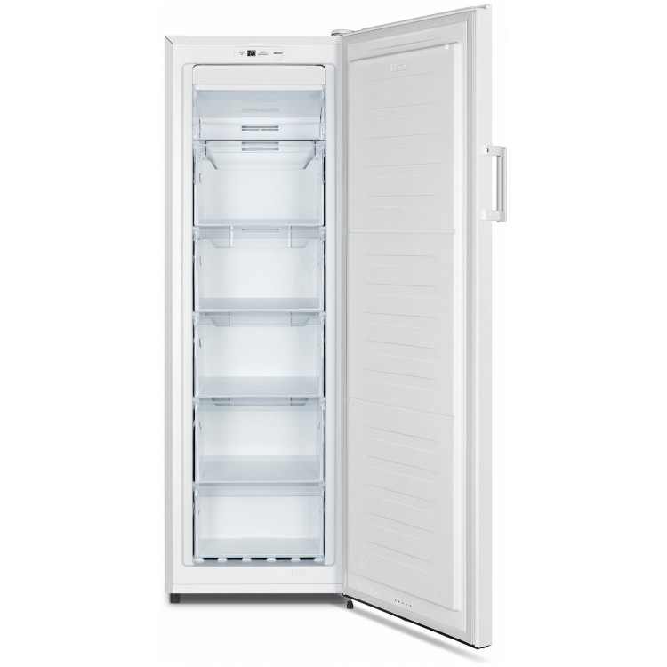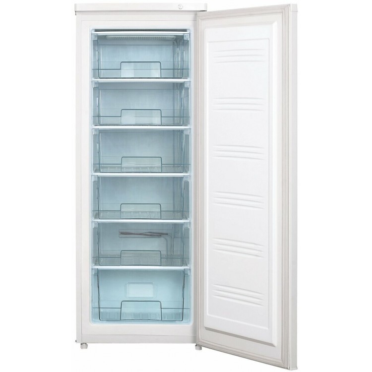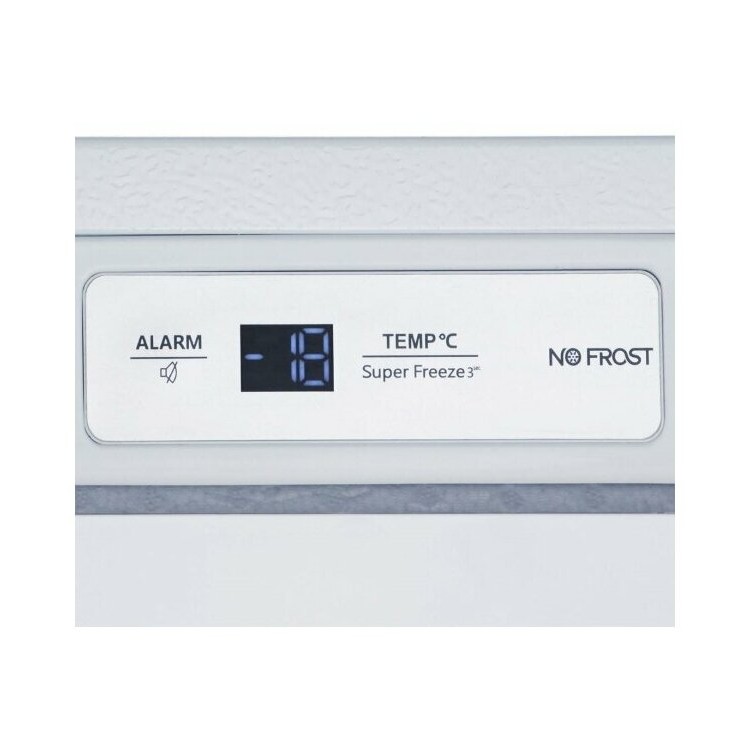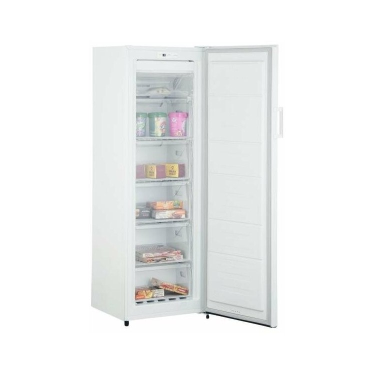 Белый шкаф с электронным управлением имеет одну камеру и пять ящиков/полок. Объём устройства составляет 198 литров, из которых 205 литров — полезный объём. Морозильник относится к классу энергопотребления А+, потребляя 299 кВтч/год и имея климатический класс N и T.