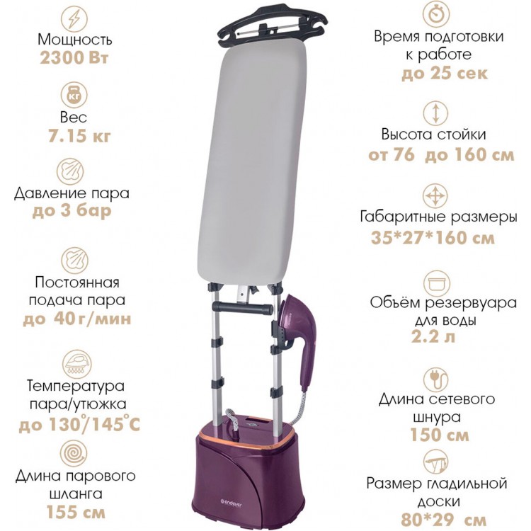Хороший и достаточно мощный отпариватель. По факту гладить получается быстрее чем утюгом. Удобная доска, можно поменять угол наклона. Ёмкость для воды объёмная надолго хватает. В общем мне понравился этот гаджет.