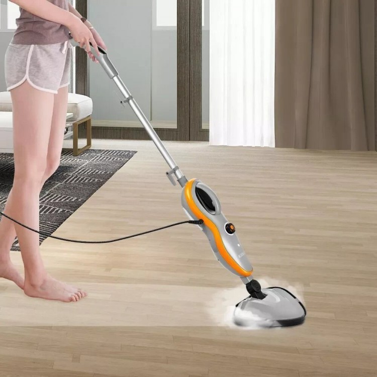 Универсальная паровая швабра 5 в 1 очень порадовала, полы моет отлично, казалось бы чистый пол, а стрлько грязи выпаривает! Отдельно как парогенератор тоже опробовала, отмыла детский стул для кормления за 10 минут, хотя в мелких дырочках еда копилась и прикипала годами, мелких насадок много, на разные труднодоступные места. Шнур длинный, что не может радовать, резервуар для воды тоже не маленький, хватает надолго. Сама швабра не такая уж тяжелая, два режима работы.