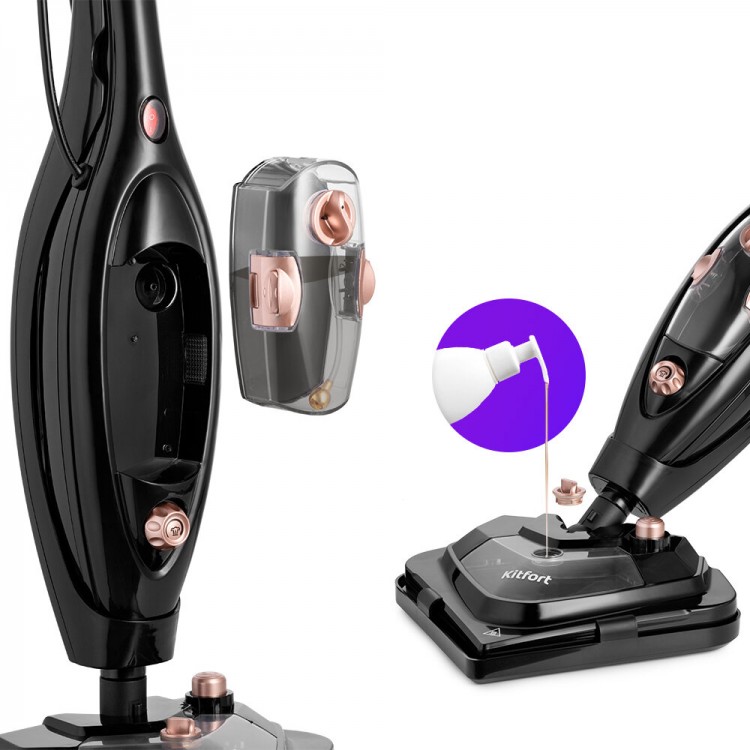 Кнопка для снятия насадки с ручного режима запала внутрь, раскрутила швабру, но сделать так и не смогла, СЦ у нас нет, а везти в другой город- дороже самой швабры. Помимо этого- постоянно капала вода, в ручном режиме ручка нагревается так, что держать невозможно, верт кальные поверхности не помоешь, т.к. вода перестает поступать в парогенератор. Вывод: можно брать только для использования по прямому назначению - для пола, но даже для пола она довольно тяжела.