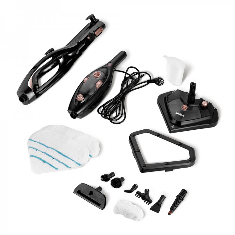 Элегантный черный цвет. Парит на пять с плюсом, выбивает паром грязь которую обычной шваброй не соберешь. Куча разных насадок для разных применений... Кто хочет чистые полы и окна берите , не пожалеете...с обычной шваброй не будет такой чистоты. китфорд спасибо.