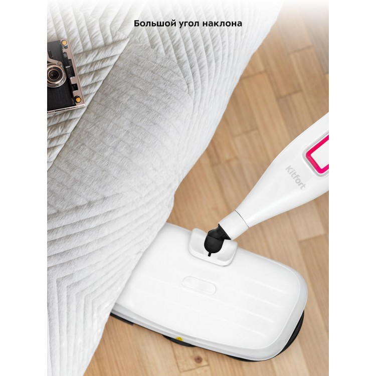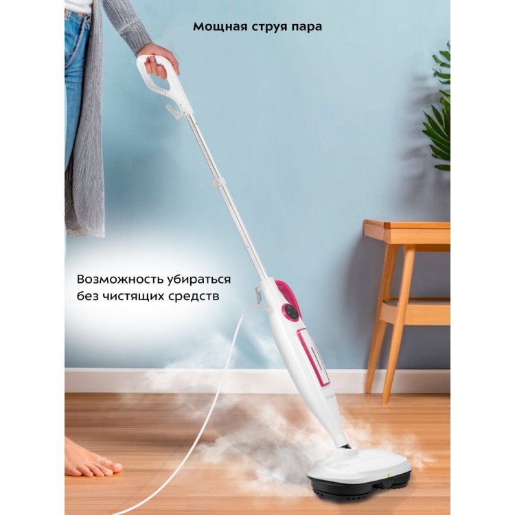 Мощный пар: Швабра быстро нагревается и производит достаточно пара, чтобы эффективно очищать полы, особенно плитку и ламинат. Пар помогает избавиться от грязи и бактерий без использования химических средств.