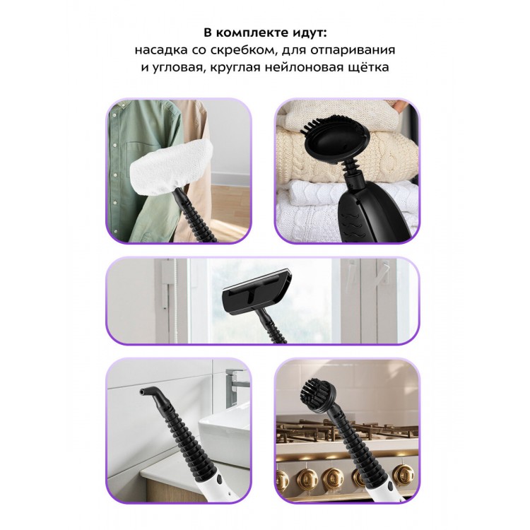 Дополнительные насадки: В комплекте идут несколько насадок, что позволяет использовать швабру не только для пола, но и для очистки других поверхностей.