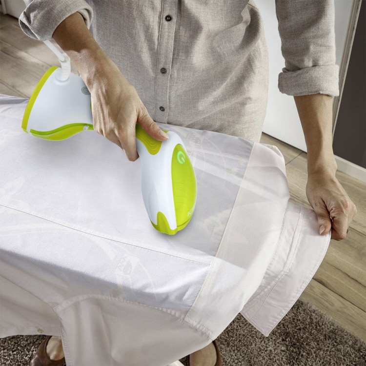 Хорошо справляется со своей задачей. Отпарил без особых усилий юбку из плотного льна. Работает как в вертикальном, так и горизонтальном положении. Не тяжёлый.