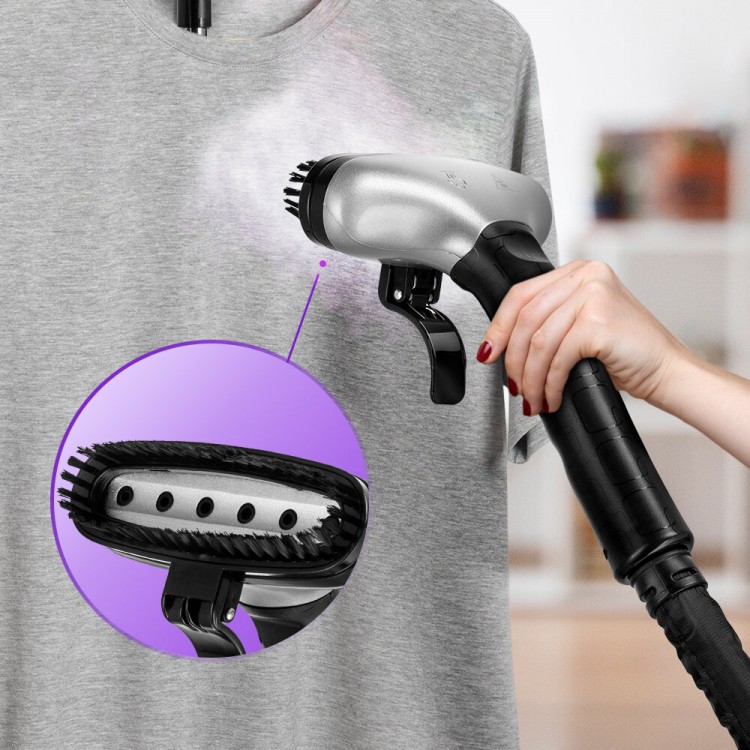 Лаконичный, симпатичный, хорошо отпаривает, быстро включается. Большой объем воды и длинный шланг - это прям супер удобно. Покупали в магазин одежды для работы - и он отлично справляется.