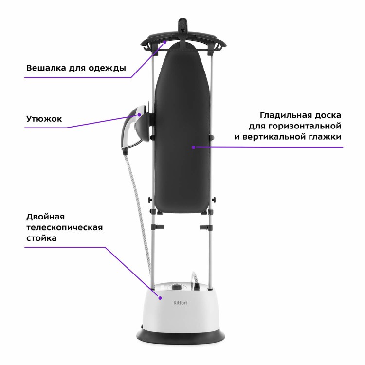 Быстро нагревается, легкая сборка, самое главное что нету влажный капель, белье не влажное после глажки, удобно крепить одежду для взрослых и детей , быстро гладит