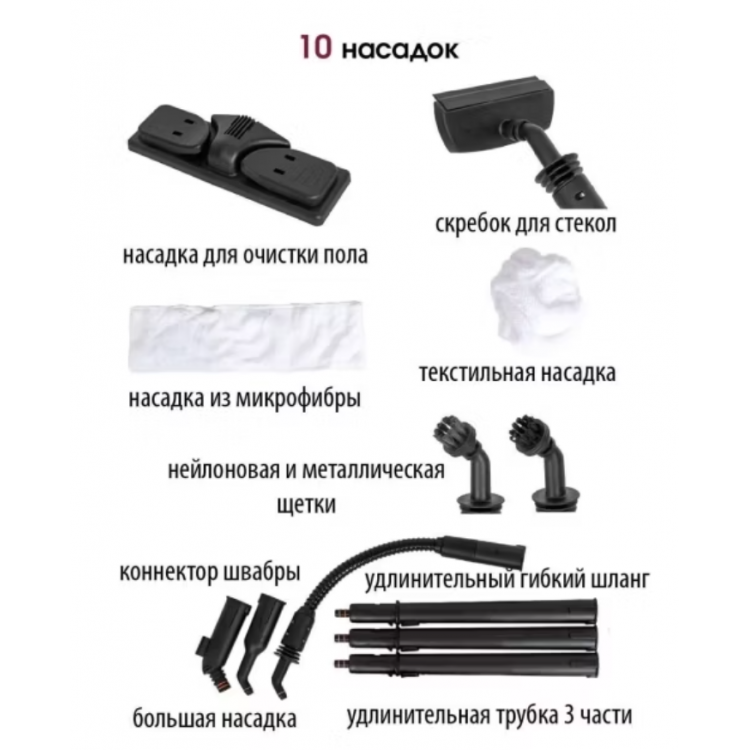 - Универсальность: Подходит для чистки полов, ковров, мягкой мебели, окон, сантехники и даже одежды.