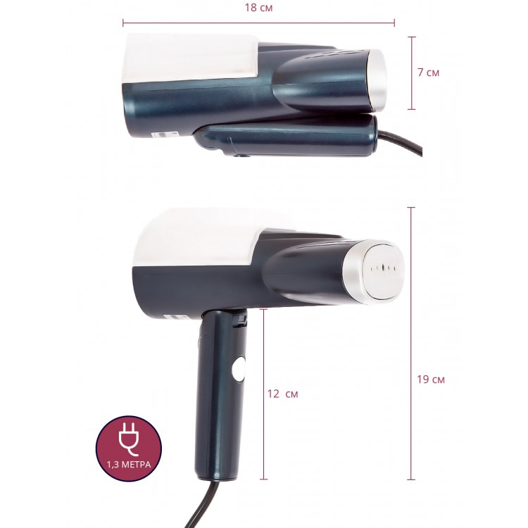 Ручная конструкция и мощность 800 Вт позволяют легко справляться с вертикальным отпариванием одежды и занавесок, а также удалять складки на мебельной обивке.