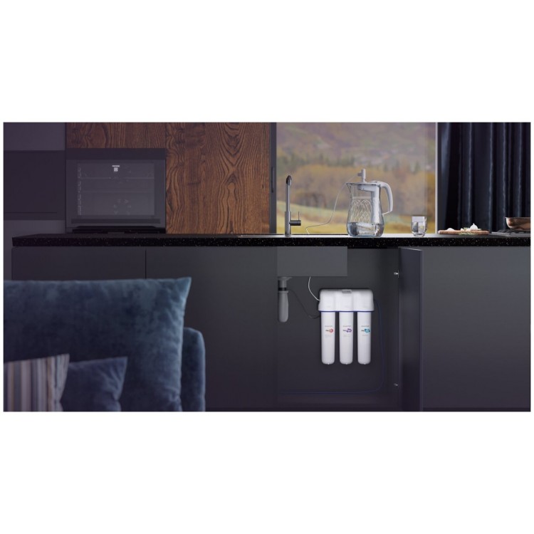 Установили на даче под мойкой, удалось подсоединить к крану старого фильтра, то есть кувшин рядом с мойкой держать не нужно. Очень удобно получилось. Вода чистая и вкусная.