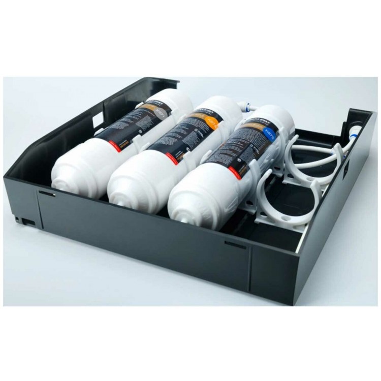 Выполняет свою основную функцию. Короб удобно крепится и хорошо скрывает 4 фильтра, в итоге даже под раковиной всё выглядит сдержано и стильно (особенно с фасадами серого цвета).