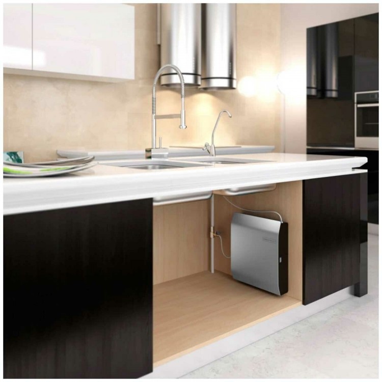 Очень стильный, компактно расположился под мойкой, вода из фильтра очень приятная на вкус!