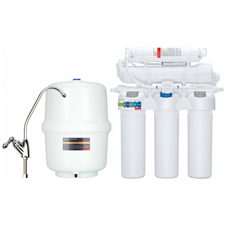 ✅ Достоинства: · Высокий уровень очистки: Обратный осмос — одна из самых эффективных технологий. Система удаляет из воды практически все: хлор, тяжелые металлы, нитраты, вирусы и бактерии. Вода после очистки действительно чистая, без привкусов и запахов. · Минерализатор: Наличие минерализатора — ключевой плюс. Он возвращает в очищенную воду полезные магний, кальций и другие минералы, делая ее не просто чистой, но и полезной для здоровья. Вкус становится гораздо приятнее, "живым". · Производительность 150 GPD: Это около 570 литров в сутки. Показатель хороший, бак накапливается достаточно быстро, чтобы не ждать чистой воды, даже если семья большая. · Надежные компоненты: Бренд Prio использует качественные комплектующие, например, мембраны японского производства Toray и активированный уголь Norit, что говорит о надежности системы.