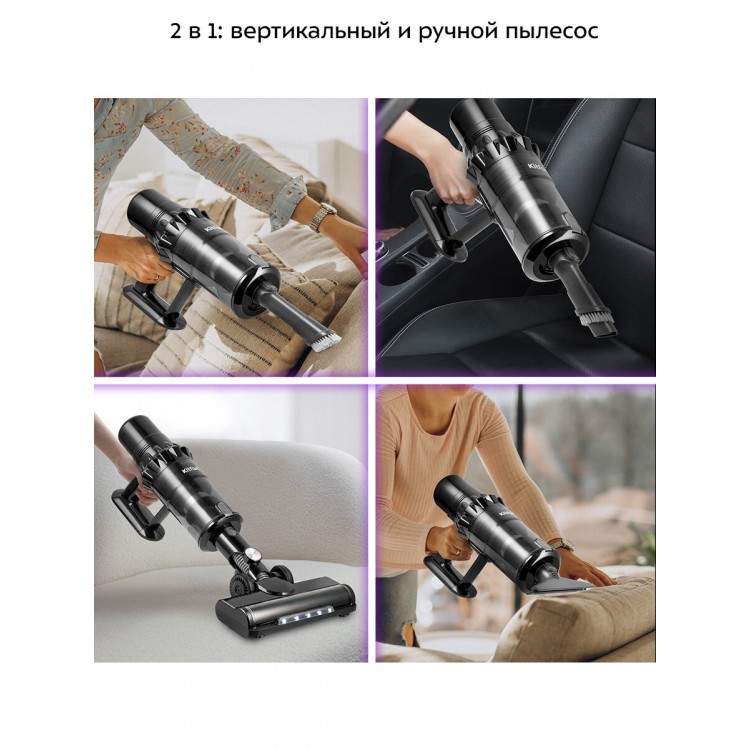 Благодаря беспроводной конструкции я больше не сталкиваюсь с проблемами, связанными с проводами. Уборка стала гораздо проще и быстрее! Пылесос прекрасно справляется с различными типами поверхностей: от плитки до ковров. Даже на стандартном режиме он эффективно собирает пыль и мелкий мусор, а на максимальной мощности просто «съедает» все, что попадается на его пути. Контейнер для сбора пыли легко очищается, что экономит время и усилия.