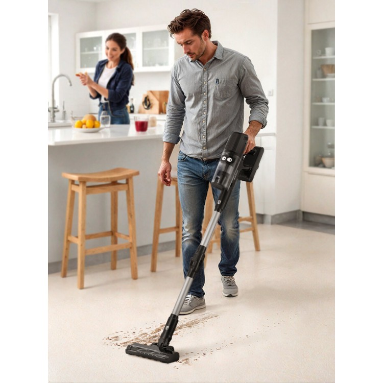 В комплекте с пылесосом вы получите зарядное устройство, комбинированную насадку, настенный держатель, универсальную насадку для сухой уборки, фильтр тонкой очистки и щелевую насадку.