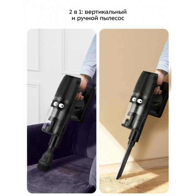 | Особенности конструкции | BLDC-мотор, вертикальная парковка, индикатор заполнения пылесборника, управление мощностью на рукоятке |
