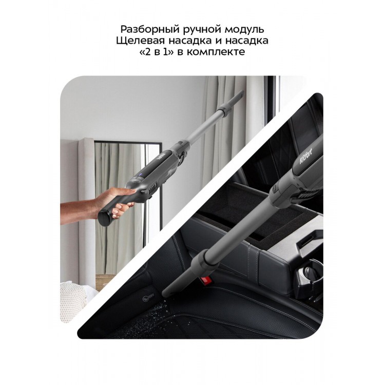 Он легко превращается из вертикального в ручной, что очень удобно для уборки в машине или чистки диванов.
