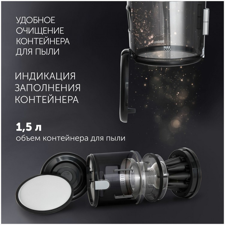 Пылесос реально мощный, внешне выглядит стильно, включение на ручке очень удобно. Также в комплекте насадка с турбо щеткой для мебели. Если у вас есть животные, очень пригодится)) Большой контейнер)