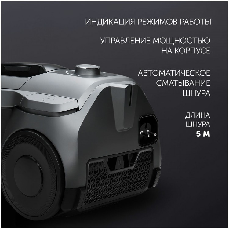 -На напольной щетке есть возможность выдвинуть щетины или наоборот задвинуть. Т.к. у меня ковер, это удобно. -Есть 3 режима, управление легкое, регулятор на корпусе. Там же кнопки для включения\выкл и смотки шнура-В основном пользуюсь на среднем режиме, мощность высокая, хватает-Понравилось, что нет мешков, просто выкидываешь собранное в мусорное ведроЯ доволен