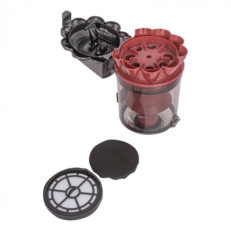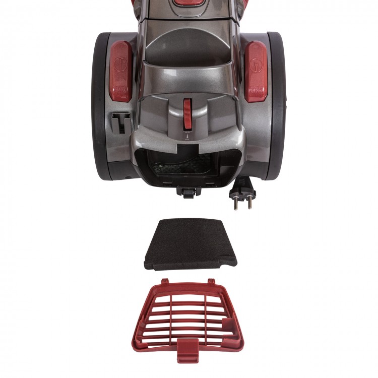 Уровень шума составляет 65 дБ, что делает уборку комфортной и не вызывает дискомфорта. Размеры пылесоса (ШхВхГ) — 26x23x37 см, поэтому он не займёт много места при хранении.