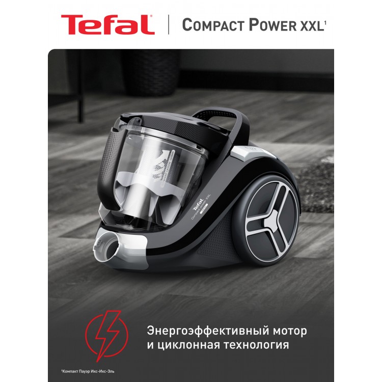 | Название | Пылесос с контейнером Tefal Compact Power XXL TW4B75EA, черный, 900 Вт, 2,5 л, безмешковый, ручка для переноски |