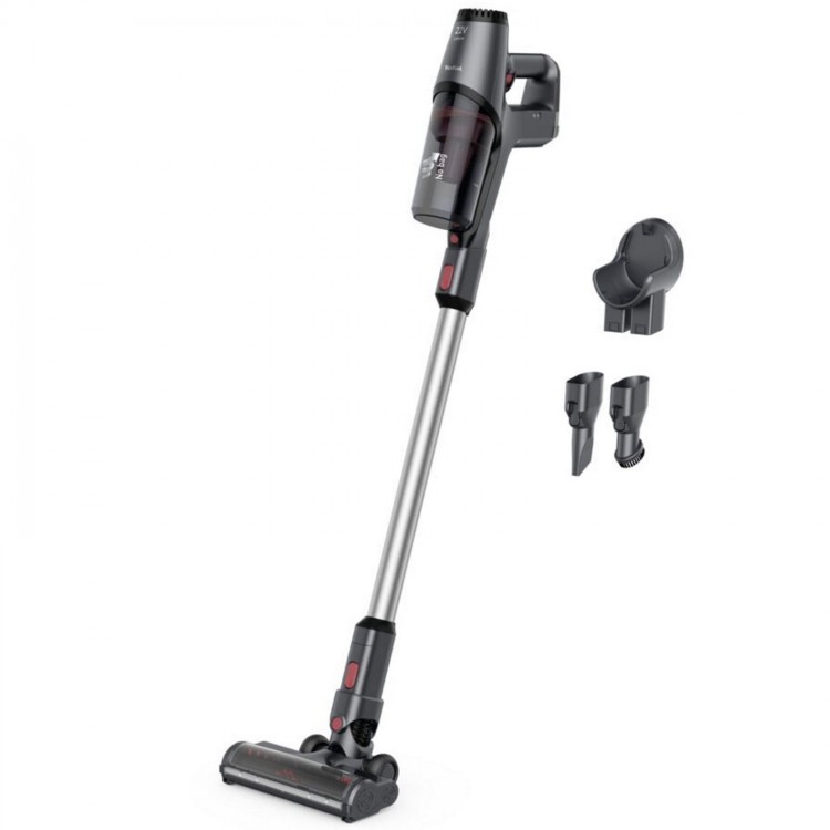 Наличие подсветки! Очень удобный и занимающий мало место пылесос. Есть зарядная станция, которую можно крепить на стену