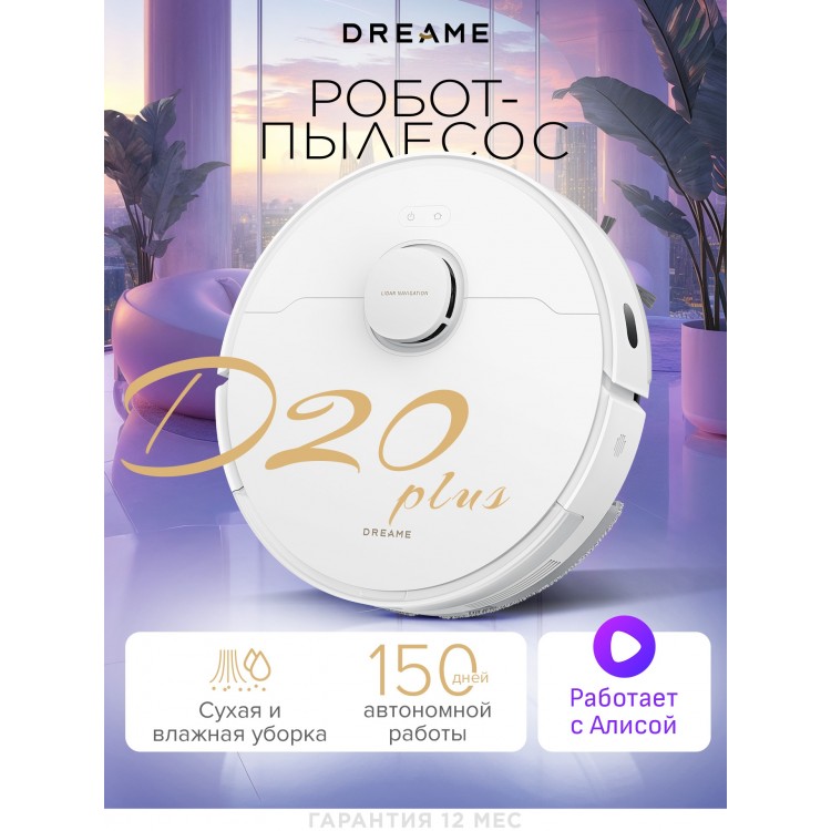 Робот-пылесос Dreame D20 Plus белого цвета — это надёжное и функциональное устройство для уборки вашего дома. С его помощью вы сможете поддерживать чистоту в помещении, не затрачивая много времени и усилий.