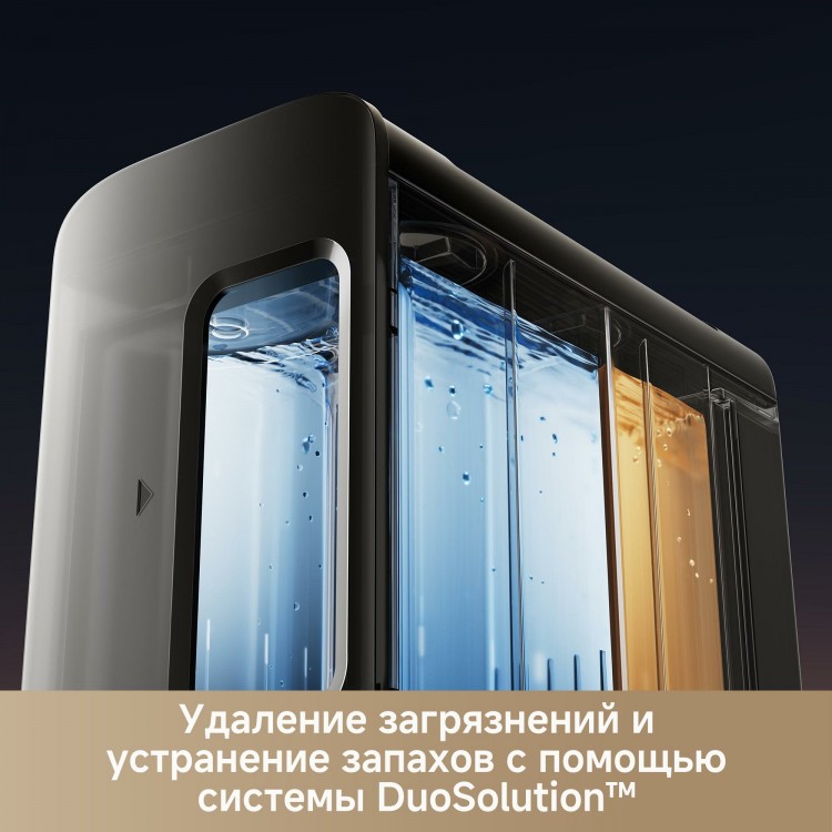 Li-Ion аккумулятор обеспечивает эффективную работу. Объём контейнера для пыли составляет 0,21 л, для воды — 3,2 л. Мусоросборник в базе также имеет объём 3,2 л.