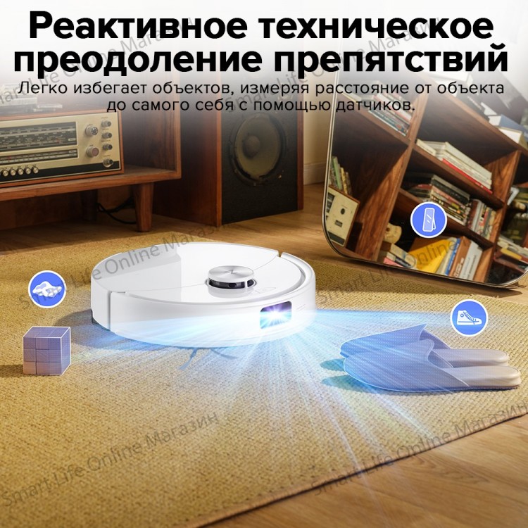 Не идентифицирует разбросанные носки - может засосать и подавиться (ничего страшного, но придётся вручную освободить и перезапустить уборку)
