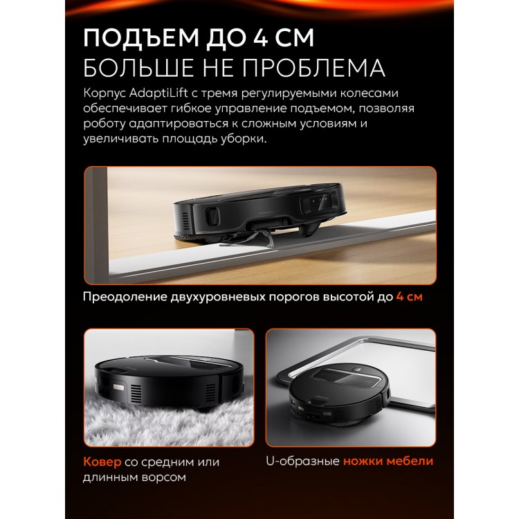 лучшая покупка для дома. Отлично моет полы. Есть регулировка уровня подачи воды на мопы, можно настроить очередность сухой и влажной уборки. Для высоких ковров - отстегиванте мопов. Проезжает пороги. Выметает из углов.