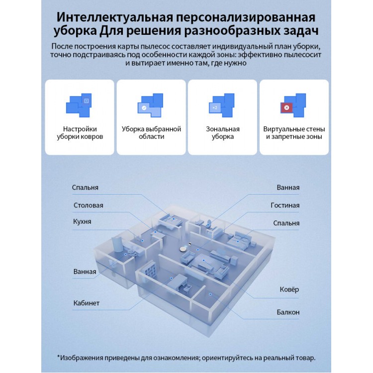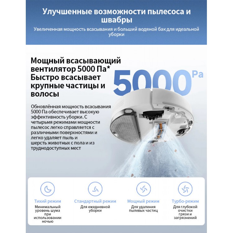 То чего и ожидал, сухая и влажная уборка на каждый день. Во время уборки перенес станцию на метр в сторону, смог определить и вернуться к ней.Через приложение Mi Home все настраивается, мощность уборки, вариант (сухая+влажная, сухая, влажная, сухая и затем влажная). После окончания приходит уведомление, что уборка окончена
