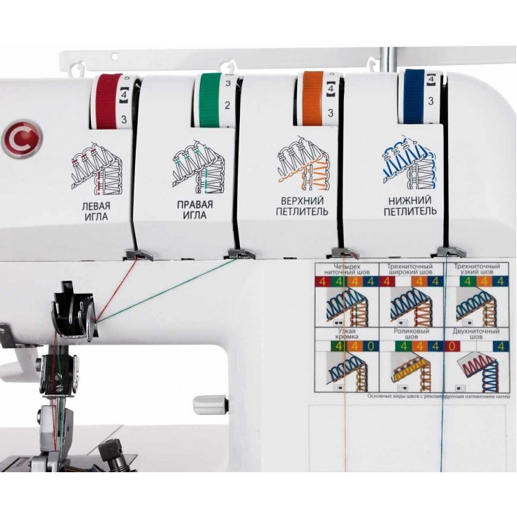 * Дополнительные функции. Оверлок оснащён такими дополнительными функциями, как дифференциальная подача, отключение ножа, нитеобрезатель и многое другое. Это делает его универсальным инструментом для любых задач.