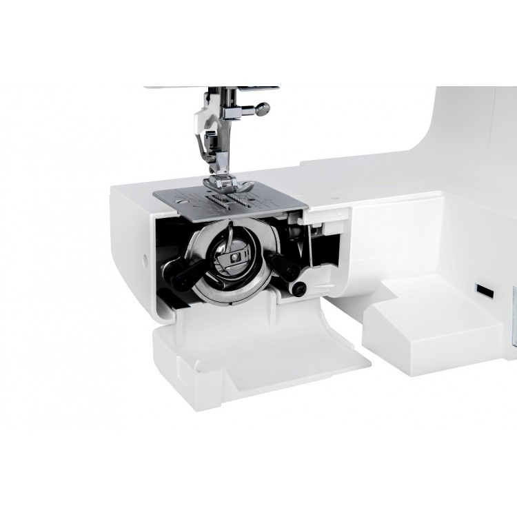 | Подробная комплектация | Инструкция, распарыватель, набор игл(3шт.) , шпульки (3 шт.), лапка для вшивания молнии , пластина для потайной подгибки , рамка для петли полуавтомат , масленка , мягкий чехол , отвертка (2шт.),педаль |