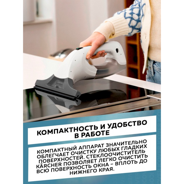 - Удобство использования. Лёгкий и компактный, стеклоочиститель Karcher легко управляется одной рукой. А благодаря эргономичной ручке его удобно держать в руке.