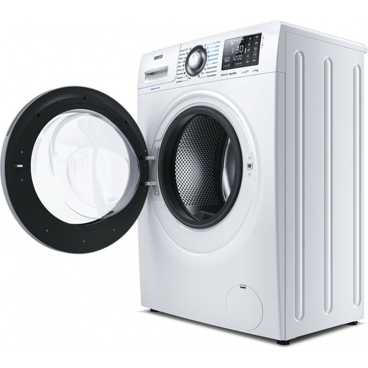 * Низкий уровень шума. Уровень шума при стирке составляет 59 дБ, а при отжиме — 75 дБ, что делает работу стиральной машины практически незаметной.