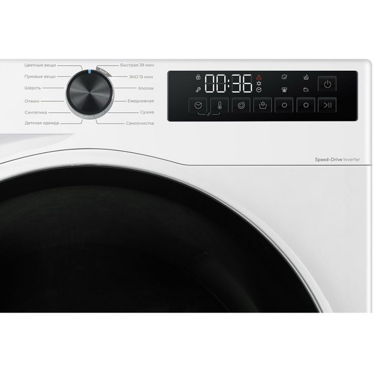 * Дополнительные функции: выбор скорости отжима и температуры стирки, контроль за уровнем пены, отложенный старт.